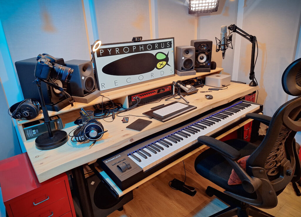PYROPHORUS RECORDS is a space designed and built by Alí Arango for the production of audiovisual content. After more than a year of a lot of imagining, planning, hard physical work and research on insulation and acoustic treatment, this new Studio destined for creation has come to light in 2022. Equipped with a high-quality Setup that allows to achieve excellent results both in recordings of solo instruments, as well as small formats, voices, dubbing and videos (video clips, promotional videos or short videos for social networks).